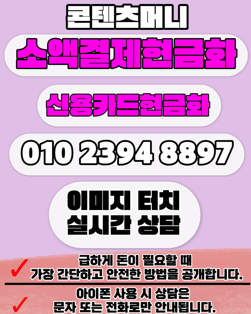 업계 최고 수준의 매입가를 자랑하는 콘텐츠머니 소액결제현금화 안내입니다. 많은 이용자가 추천하는 콘텐츠머니 소액결제현금화는 높은 신뢰도를 바탕으로 운영되는 전문 업체입니다. 빠른 처리 속도가 증명하는 소액결제현금화의 편리함을 경험하시고 소액결제현금화 궁금증은 언제든 문의주세요.