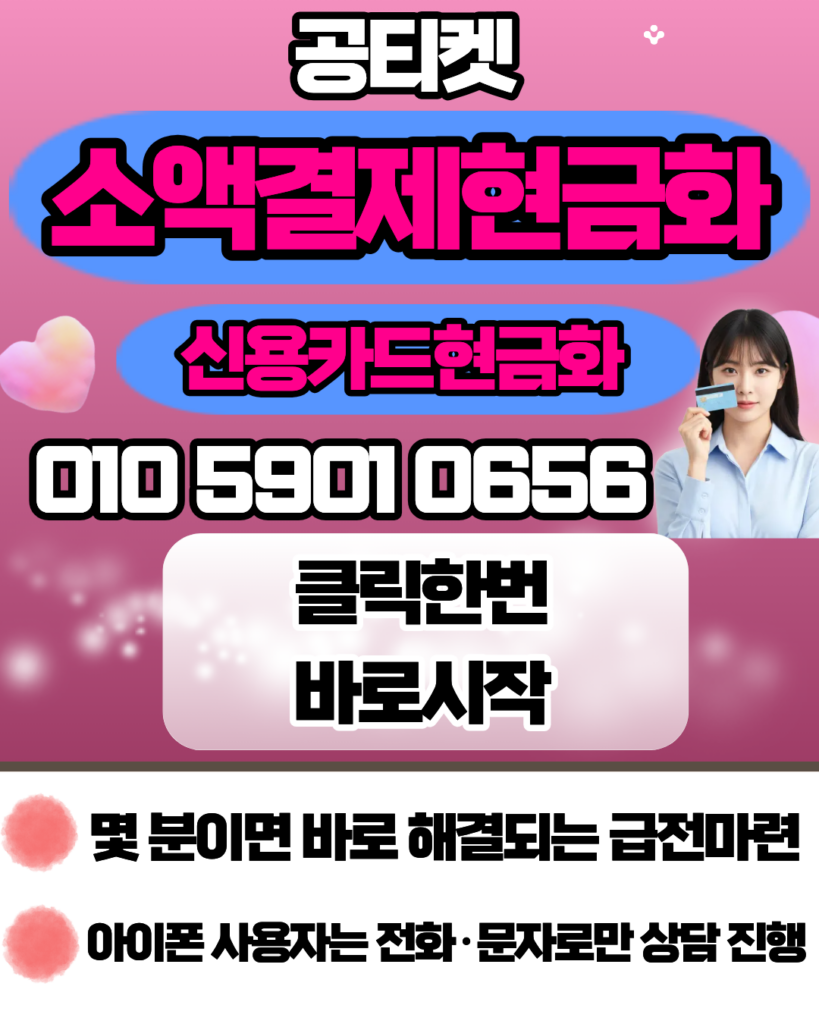 소액결제현금화 24시간상담 서비스를 통해 필요한 자금을 즉시 확보해 보세요. 공티켓 010-5901-0656은 소액결제현금화 정식 등록 업체로서 투명한 소액결제현금화를 보장하며 상담 후 빠른 입금을 원칙으로 합니다. 카드현금화 역시 전문적인 시스템을 갖추고 있어 누구나 쉽게 카드현금화 상담을 받고 안전하게 카드현금화를 진행하실 수 있습니다. 더불어 신용카드현금화 관련해서도 풍부한 노하우를 바탕으로 신용카드현금화 한도를 최대로 활용하실 수 있게 안내해 드리니 최고의 신용카드현금화 서비스를 경험해 보세요.
