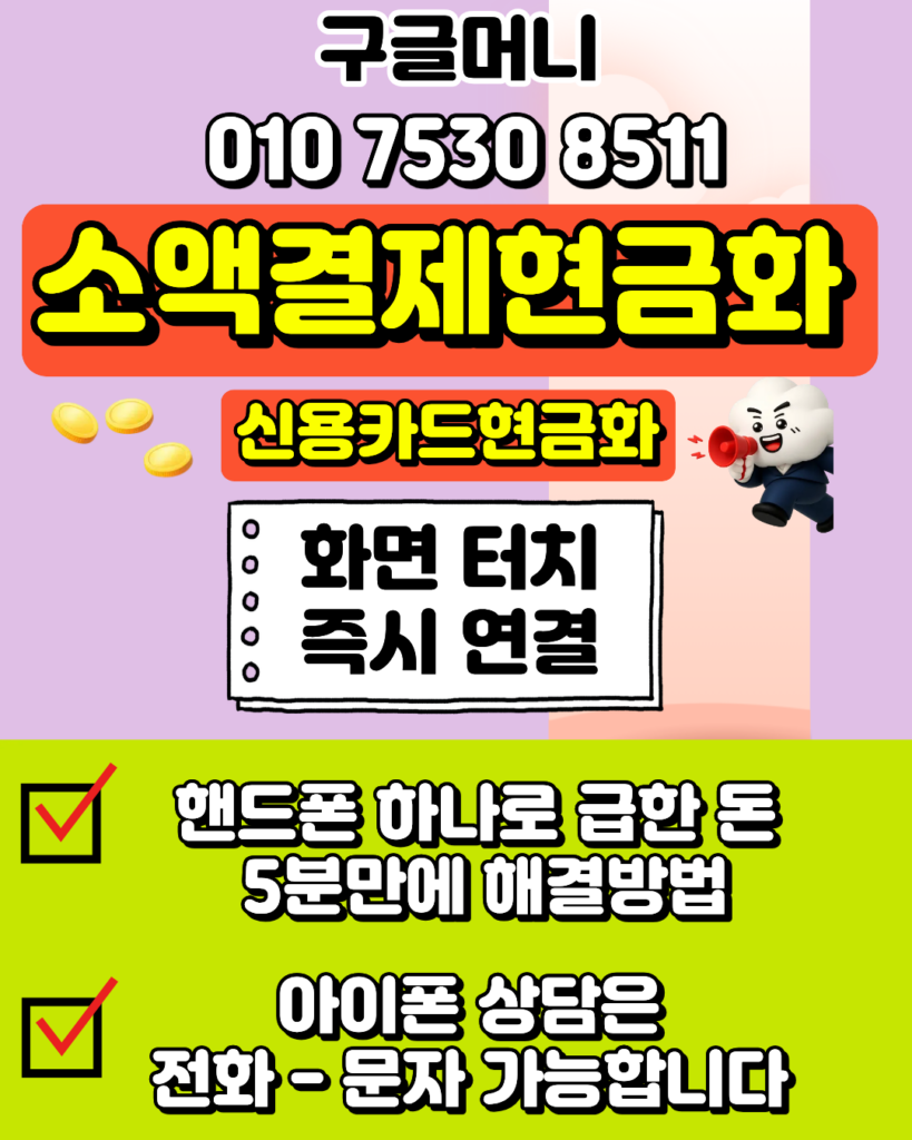소액결제현금화 010-7530-8511 구글머니 당일 즉시처리글쓴이 edwin0811 / 3월 24, 2026 당일 급전이 필요할 때 소액결제현금화 전문 구글머니 010-7530-8511을 찾아주시면 소액결제현금화 한도를 즉시 현금으로 바꿔드립니다.소액결제현금화 24시간 친절 상담365일 휴무 없이 소액결제현금화 상담이 가능하며, 밤늦은 시간에도 소액결제현금화 신청을 도와드리고 있습니다.소액결제현금화 승인율 높이는 법구글머니만의 노하우로 소액결제현금화 승인율을 극대화하여, 타사에서 거절된 소액결제현금화 건도 해결해 드립니다. 💰 소액결제현금화 1초입금 완료 클릭 시 1초 내 상담이 시작됩니다.