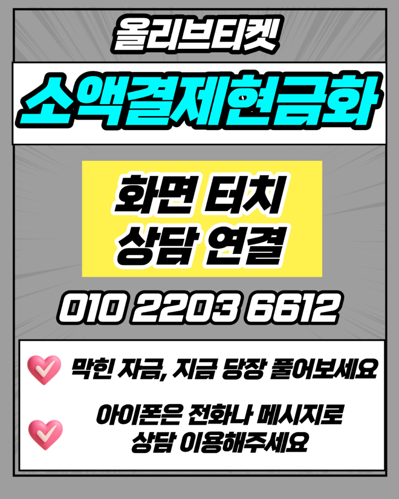 소액결제현금화 010-2203-6612 올리브티켓 즉시입금