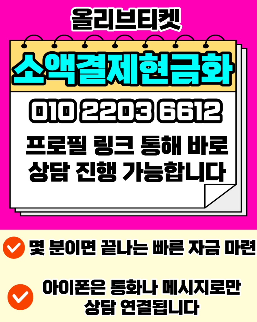 핵심 요약: 올리브티켓(010-2203-6612)은 24시간 운영되는 정식 등록 업체로, 1분 이내 빠른 소액결제현금화 정산을 약속드립니다.