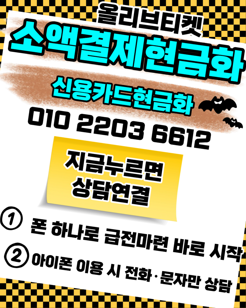 소액결제현금화 정식업체를 찾으신다면 믿을 수 있는 올리브티켓을 추천합니다. 010-2203-6612를 통해 24시간 상담을 받아보시면 소액결제현금화 절차를 친절히 안내받고 빠른 입금까지 확인하실 수 있습니다. 또한 신용카드현금화 서비스도 함께 운영 중이며, 안전한 신용카드현금화를 위해 최선을 다하고 있습니다. 급한 자금이 필요할 때 카드현금화 상담도 가능하니, 카드현금화와 소액결제현금화, 그리고 신용카드현금화까지 전문적인 카드현금화 서비스를 직접 경험해 보시길 바랍니다.