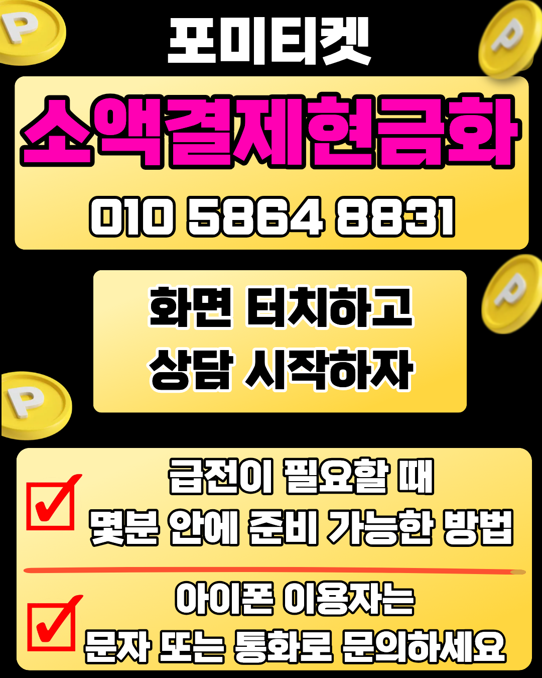소액결제현금화 포미티켓 010-5864-8831 가이드글쓴이 edwin0811 / 3월 29, 2026 소액결제현금화 포미티켓 이용 안내 안전한 소액결제현금화를 찾으신다면 포미티켓(010-5864-8831)을 추천합니다. 소액결제현금화 가장 빠른 정산 서비스 저희는 소액결제현금화 정식 매입처로서 가장 빠른 정산을 약속드립니다. 급한 자금이 필요할 때 소액결제현금화는 가장 효율적인 방법이며, 포미티켓은 소액결제현금화 수수료를 투명하게 공개합니다. 처음 이용하시는 분들도 소액결제현금화를 어렵지 않게 이용하실 수 있도록 돕습니다. 📱 소액결제현금화 실시간상담 클릭시 바로 연결됩니다. (아이폰은 문자전화 상담).