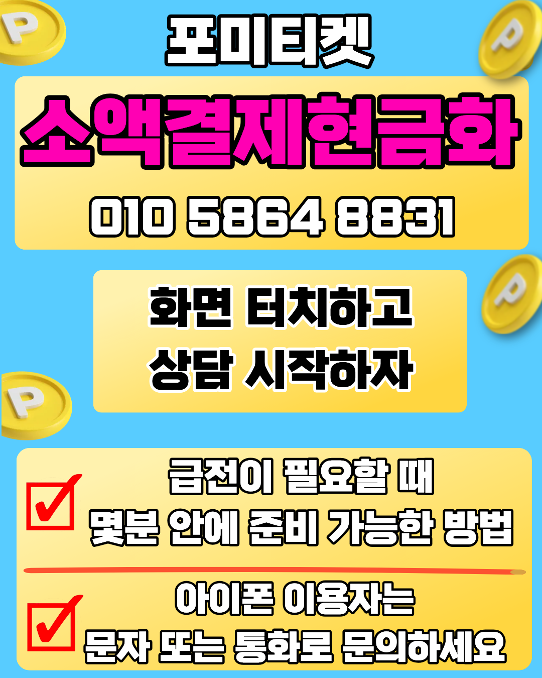 소액결제현금화 포미티켓 24시간 자동매입글쓴이 edwin0811 / 3월 29, 2026 소액결제현금화 포미티켓 24시간 운영 포미티켓은 365일 언제나 소액결제현금화 서비스를 제공합니다. 소액결제현금화 야간 새벽 즉시입금 보장 야간이나 새벽 시간에도 소액결제현금화가 필요하다면 주저 말고 연락 주세요. 자동 매입 시스템을 통해 소액결제현금화 대기 시간을 최소화했으며, 신청 즉시 소액결제현금화 입금이 완료됩니다. 가장 신속한 소액결제현금화를 원하신다면 포미티켓이 정답입니다. 💰 소액결제현금화 실시간상담 클릭시 바로 연결됩니다. (아이폰은 문자전화 상담)