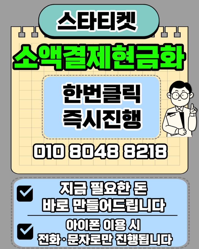 소액결제현금화 스타티켓 010-8048-8218 당일 즉시 입금