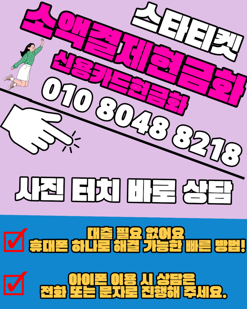 시간과 장소에 상관없이 이용 가능한 카드현금화 서비스를 스타티켓에서 만나보세요. 공휴일이나 늦은 밤에도 카드현금화 상담은 상시 열려 있으며, 신속한 카드현금화 처리를 통해 고객님의 소중한 시간을 절약해 드립니다. 스타티켓 공식 채널에서 카드현금화 방법을 확인 후 간편하게 신청하세요.