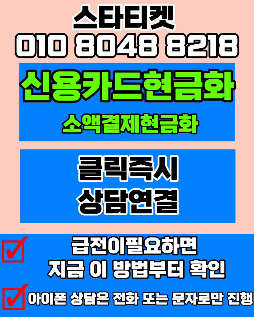 신용카드현금화 24시간상담부터 처리까지 일사천리로 진행되는 스타티켓을 소개합니다. 010-8048-8218 번호를 통해 언제 어디서나 상담이 가능하며, 정식업체의 안전한 보안 시스템 덕분에 안심하고 거래할 수 있었습니다. 무엇보다 5분 내외로 완료되는 빠른 입금은 스타티켓의 전문성을 잘 보여주는 대목입니다. 급하게 자금이 필요해 알아보시는 분들에게 스타티켓은 가장 든든한 조력자가 되어줄 것입니다.