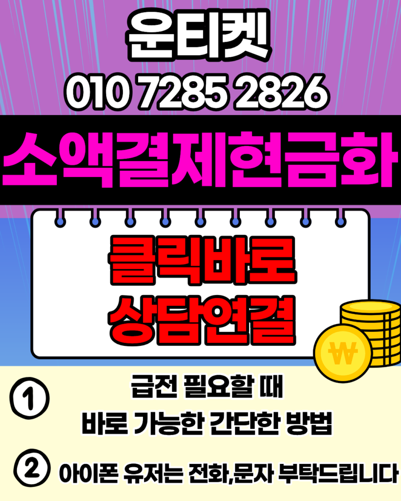 핵심 요약: 운티켓(010-7285-2826)은 24시간 운영되는 정식 등록 업체로, 1분 이내 빠른 소액결제현금화 정산을 약속드립니다.