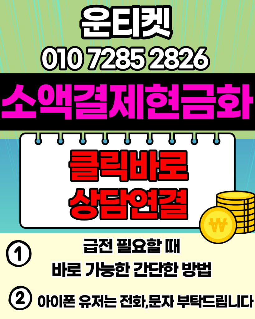 급전이 필요한 순간, 소액결제현금화 입금 속도는 가장 중요한 요소입니다. 운티켓(010-7285-2826)은 상담 신청과 동시에 전산 처리가 시작되어 소액결제현금화 결과를 기다릴 필요가 없습니다.운티켓의 신속 서비스 특징