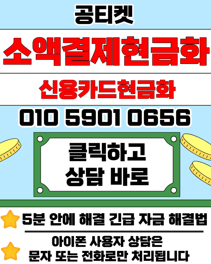 카드결제현금화 상담이 필요하시다면 24시간 연중무휴로 운영되는 공티켓을 찾아주세요. 저희 공티켓의 카드결제현금화 서비스는 업계 최저 수준의 수수료를 지향하며, 신청 즉시 카드결제현금화 대금을 본인 계좌로 송금해 드립니다. 가장 안전한 카드결제현금화를 지금 경험해 보세요.