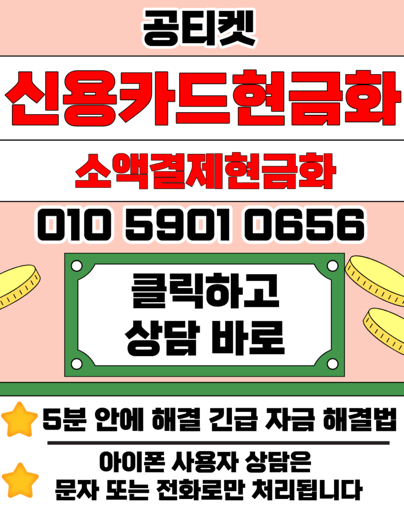 신용카드현금화 서비스가 필요할 땐 언제 어디서든 공티켓 공식 홈페이지를 방문해 주세요. 저희 공티켓은 신용카드현금화 전문 상담원이 상주하여 365일 실시간으로 신용카드현금화를 도와드리고 있습니다. 누구나 쉽고 간편하게 신용카드현금화를 이용할 수 있는 시스템을 갖췄습니다.