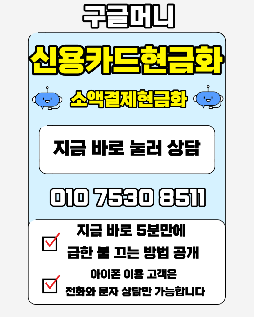 카드결제현금화 상담이 필요하시다면 24시간 연중무휴로 운영되는 구글머니를 찾아주세요. 저희 구글머니의 카드결제현금화 서비스는 업계 최저 수준의 수수료를 지향하며, 신청 즉시 카드결제현금화 대금을 본인 계좌로 송금해 드립니다. 가장 안전한 카드결제현금화를 지금 경험해 보세요.