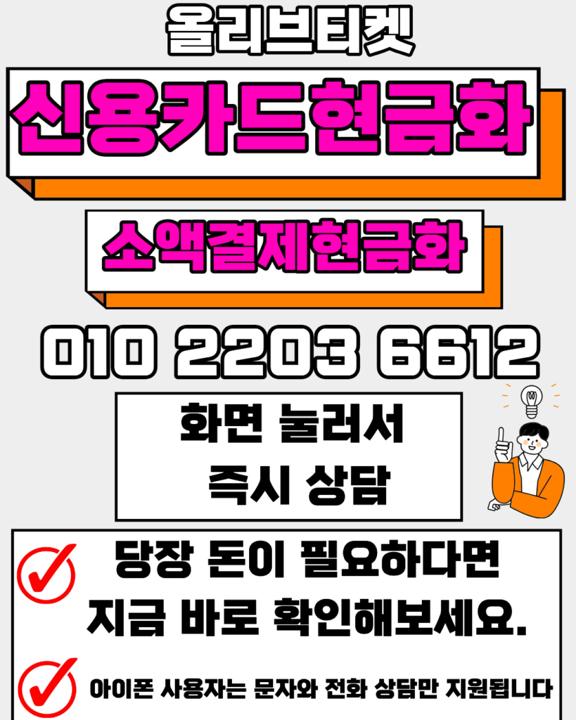 카드결제현금화 010-2203-6612 올리브티켓 신용카드현금화글쓴이 edwin0811 / 3월 19, 2026 카드결제현금화 24시 올리브티켓 010-2203-6612 카드결제현금화 실시간 신용카드현금화 소액결제현금화 가이드 🏆 신용카드현금화 업계 최고가 100% 안전보장