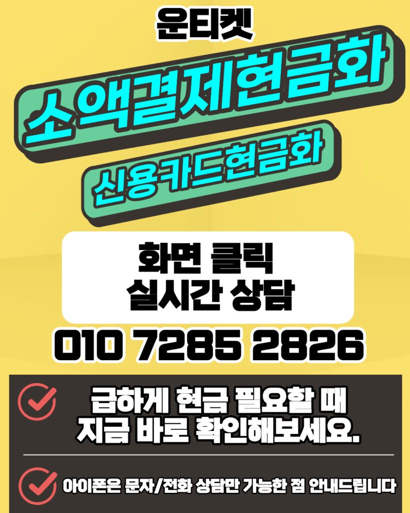 카드현금화 신용카드현금화 소액결제현금화 운티켓 010-7285-2826글쓴이 edwin0811 / 3월 19, 2026 카드현금화 신용카드현금화 소액결제현금화 운티켓(010-7285-2826) 영상 가이드를 통해 소액결제현금화를 즉시 처리하세요. 🏆 신용카드현금화 업계 최고가 100% 안전보장